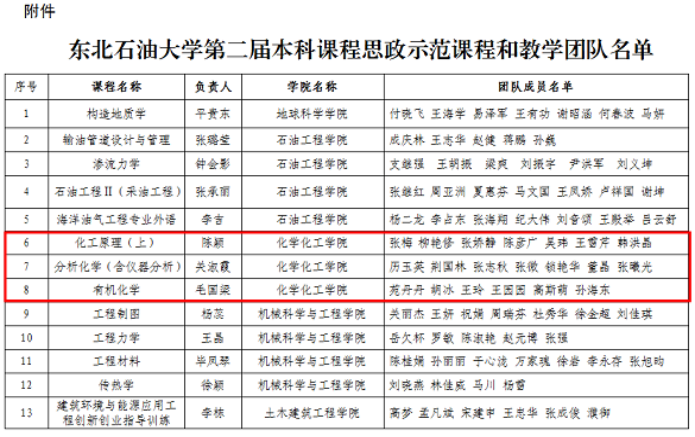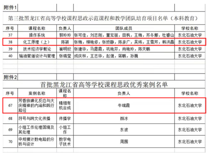 (通讯员 张梅)近日,黑龙江省教育厅发布了《关于黑龙江高校第三批课程思政示范培育项目、首批课程思政优秀案例、首批外语专业“三进”示范课程和教学团队建设点名单的公示》,tyc5997太阳集团4门本科课程入选第三批黑龙江省高等学校课程思政示范课程和教学团队培育项目,4个教学案例获批首批黑龙江省高等学校课程思政优秀案例,tyc5997太阳集团陈颖教授负责的《化工原理(上)》课程思政示范课程和教学团队培育项目与牛瑞霞副教授负责的《精细有机合成》课程“芳香族磺化反应与大庆精神的内涵和践行路径”思政优秀案例榜上有名。