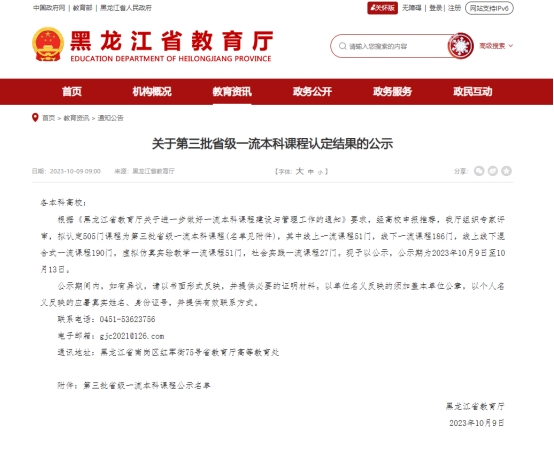 近日,第三批省级一流本科课程认定结果已公示,我院获批8门课程。