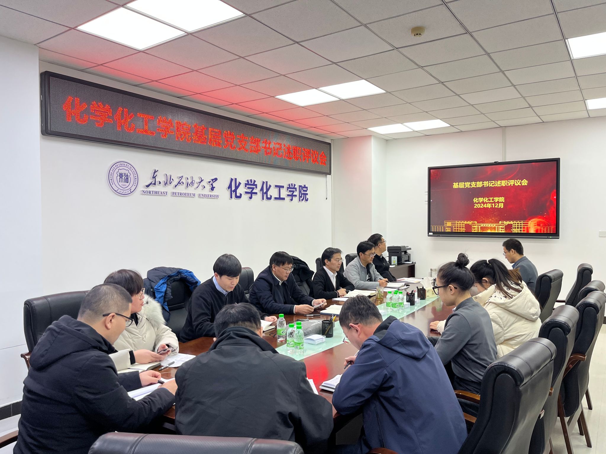 按照学校《关于做好2024年度基层党组织书记抓党建工作述职评议考核工作的通知》要求,12月30日下午,在化工馆小会议室,我院召开2024年度党支部书记抓党建工作述职评议会议。学校党委宣传部副部长苍留松同志到场指导工作,学院党委领导班子成员和9位党支部书记参加会议,党委书记司国海主持会议。