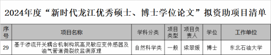 近日,黑龙江省教育厅公示了2024年度“新时代龙江优秀硕士、博士学位论文”项目拟资助名单。根据《“新时代龙江优秀硕士、博士学位论文”立项资助办法(试行)》相关规定,经过个人申报、单位推荐、教育厅初审和专家通讯评审等严格程序,最终确定2024年度资助项目100项,其中重点项目29项,一般项目71项。