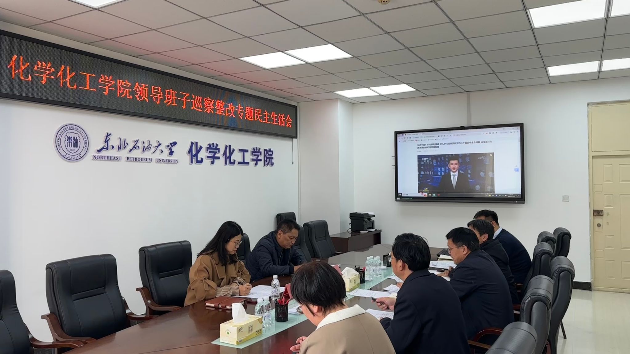 按照学校党委统一部署,根据《tyc5997太阳集团巡察整改专题民主生活会方案》要求,11月11日下午,我院在化工馆230召开巡察整改专题民主生活会。学校督导组李邦忠、冯雪娜2位同志列席会议,学院处级领导班子成员参加会议,学院党委书记司国海主持会议。