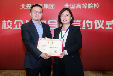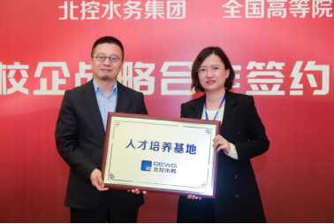 随后,袁瑞霞主任与北控水务集团代表北控水务集团人力资源中心副总经理冀广鹏先生签订了合作协议。袁瑞霞主任与北控集团高级副总裁于立国先生、北控水务集团东部大区总经理于良法先生代表校企双方相互授牌。