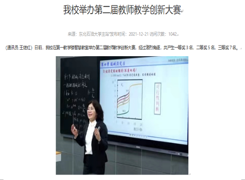 我校于2021年12月21日公布了第二届教师教学创新大赛评选结果,我院化学系关淑霞副教授负责申报的《分析化学(含仪器分析)》教学团队,荣获我校第二届教师教学创新大赛二等奖,并推荐到黑龙江省参加比赛。